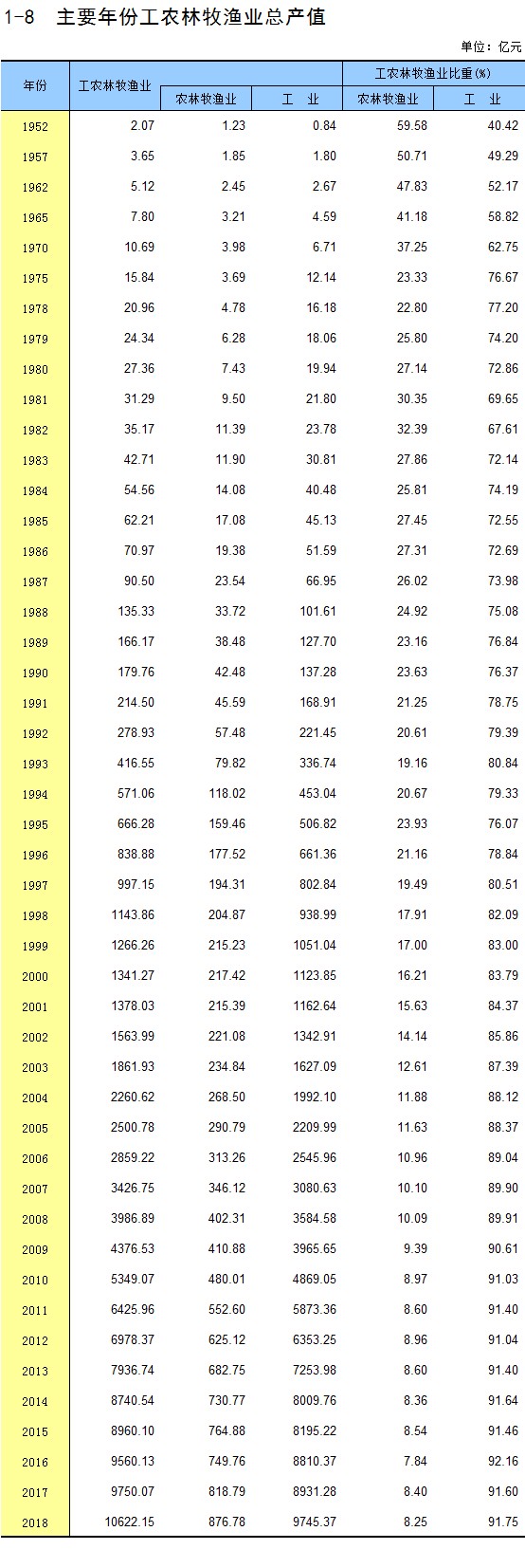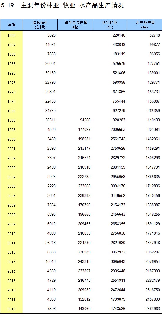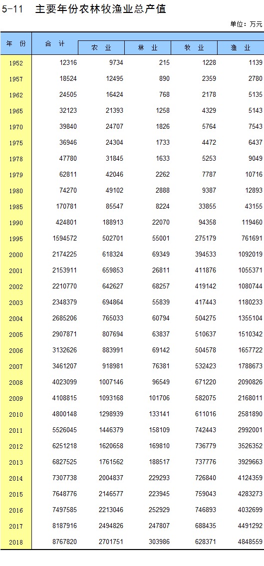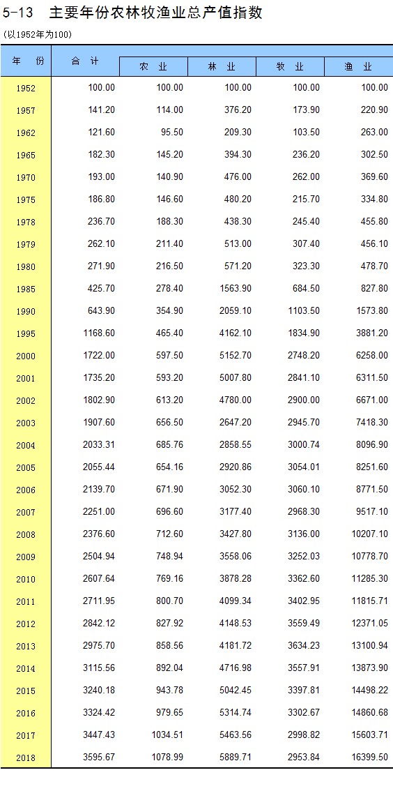 5-13 主要年份农林牧渔业总产值指数(以1952年为100)