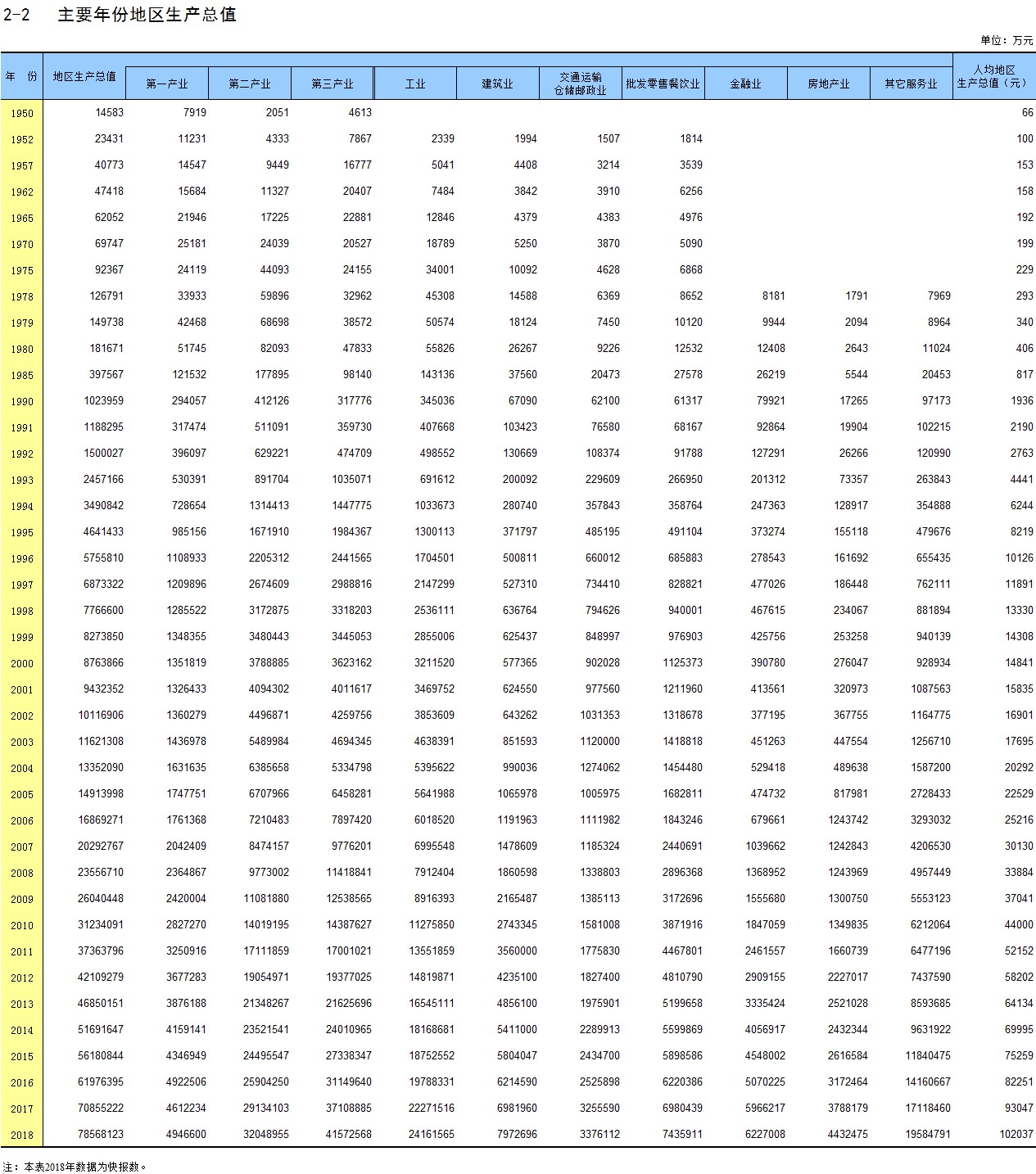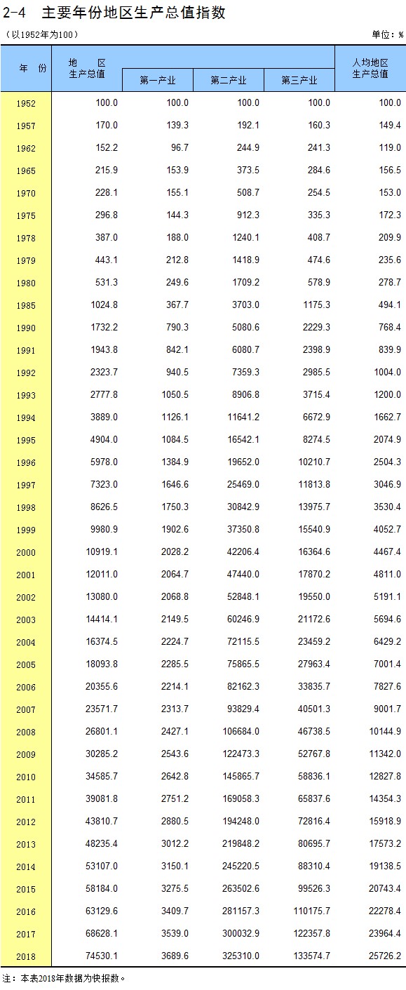 2-4 主要年份地区生产总值指数(以1952年为100)