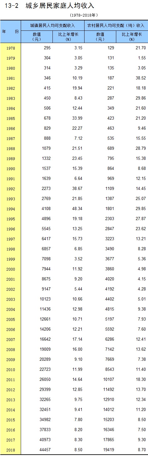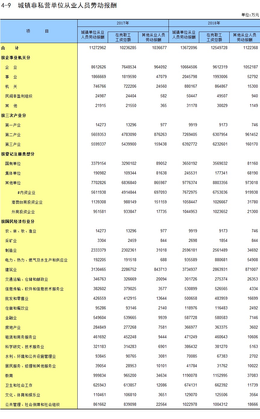 4-13 城镇非私营单位从业人员人均劳动报酬