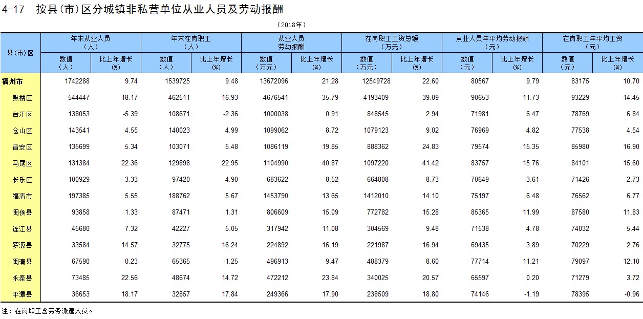 4-17 按县(市)区分城镇非私营单位从业人员及劳动报酬