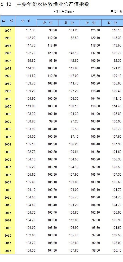 5-12 主要年份农林牧渔业总产值指数(以上年为100)