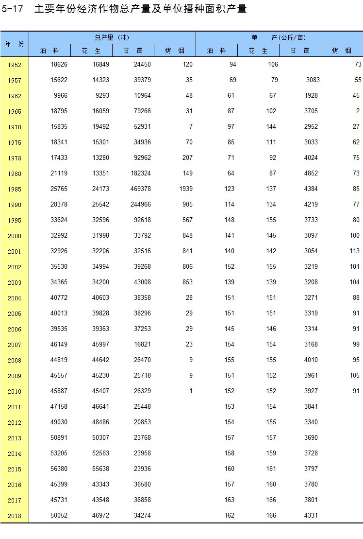 5-17 主要年份经济作物总产量及单位播种面积产量