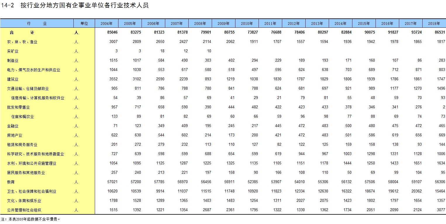14-2 按行业分地方国有企事业单位各行业技术人员