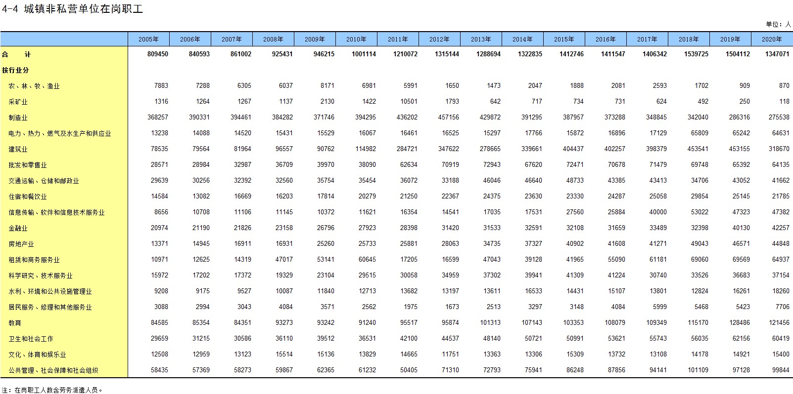 4-11 ����(��)���ֳ����˽Ӫ��λ��ҵ��Ա���Ͷ�����