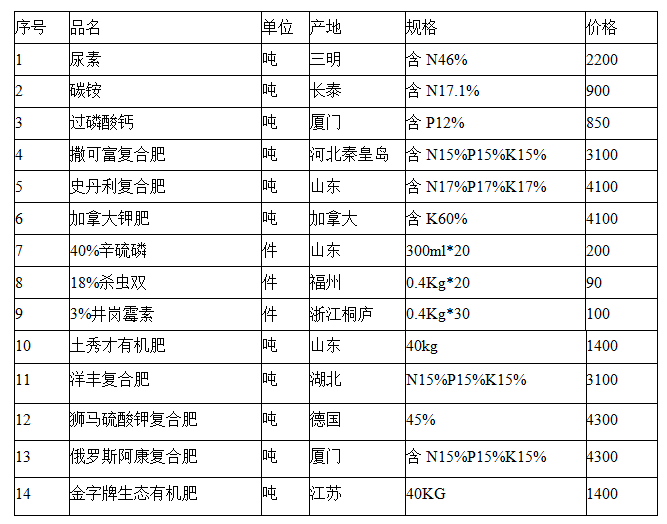 2025年12月主要农业生产资料价格行情