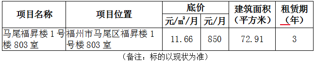 1、以上仅为提示性公告,具体以福州海峡纵横电子竞价平台公告为准。各竞租人在规定的竞价时间内登录平台的竞价大厅(网址:www.salp.com.cn)参与本项目标的的报名和报价,最后按价高者得的原则确定承租人。