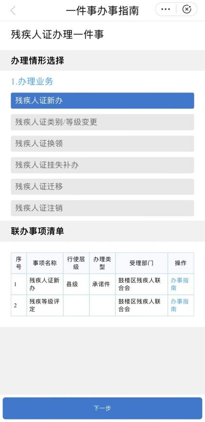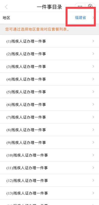 进入福建省“一件事目录”→进入办理业务,选择“ 残疾人证新办”页面;