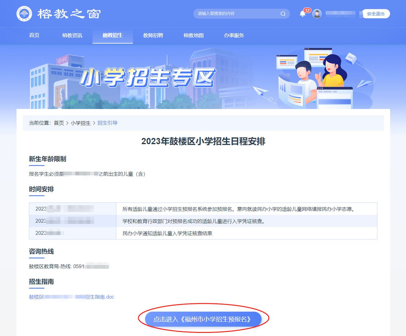 3.查看招生引导,点击进入《最佳线上百家乐娱乐场小学招生预报名》