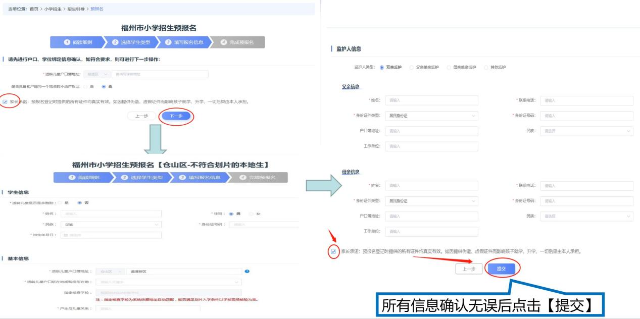(3)未居住在父母或自有房产所在地的五区户口孤儿按学生类型“不符合划片的本地生”预报名,不需填写父母信息,填写其他监护人信息即可。
