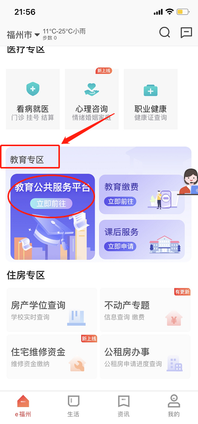 (3)在首页找到【教育专区】,点击【教育公共服务平台】图标