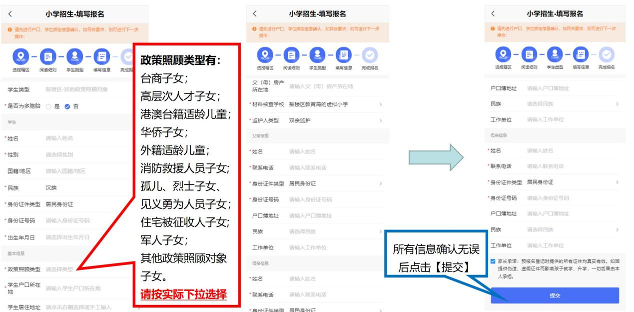 (2)不符合划片的本地生、其他政策照顾对象中的单亲适龄儿童只需填写父母亲或其他监护人之一的信息。
