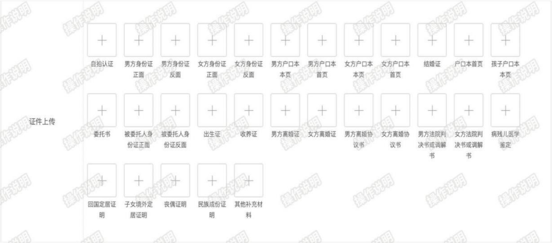 在系统申请时需要上传夫妻双方的身份证,结婚证(未婚可不上传),户口簿,自拍认证为必选项。