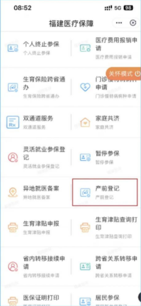 参保女职工确诊怀孕并按规定办理生育服务登记或生育服务证后,需在生育住院前办理产前登记手续。可通过“福建医疗保障”微信小程序、闽政通“医保服务-业务经办-产前登记”模块线上登记,或至医保管理部窗口办理。