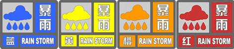 暴雨蓝色、黄色、橙色、红色预警信号图标
