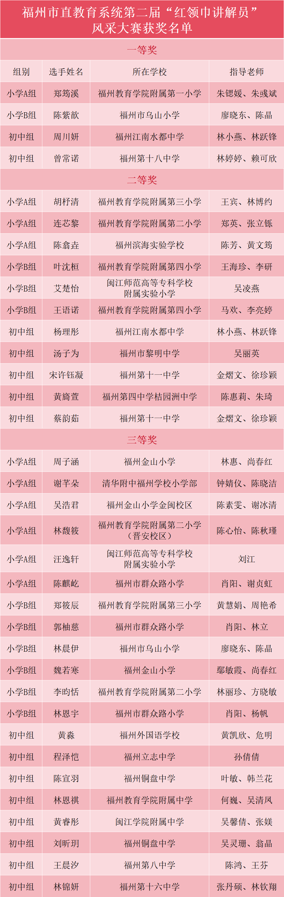 近日,由共青团最佳线上百家乐娱乐场教育局委员会主办、福州教育学院附属第三小学协办的最佳线上百家乐娱乐场直教育系统第二届 “红领巾讲解员” 大赛收官。赛事面向市直(含在榕省属)教育系统全体少先队员,设初赛、研学、决赛三个环节,旨在通过“以赛促学”的方式,为少先队员搭建展示综合素养的舞台,引导青少年厚植爱国情怀、增强文化自信,让更多少先队员用声音传递力量,全方位挖掘和培养优秀“红领巾讲解员”。