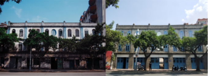 历史建筑保护利用示范项目—亭下路129-131号(橄榄五大厝),活化利用前后对比