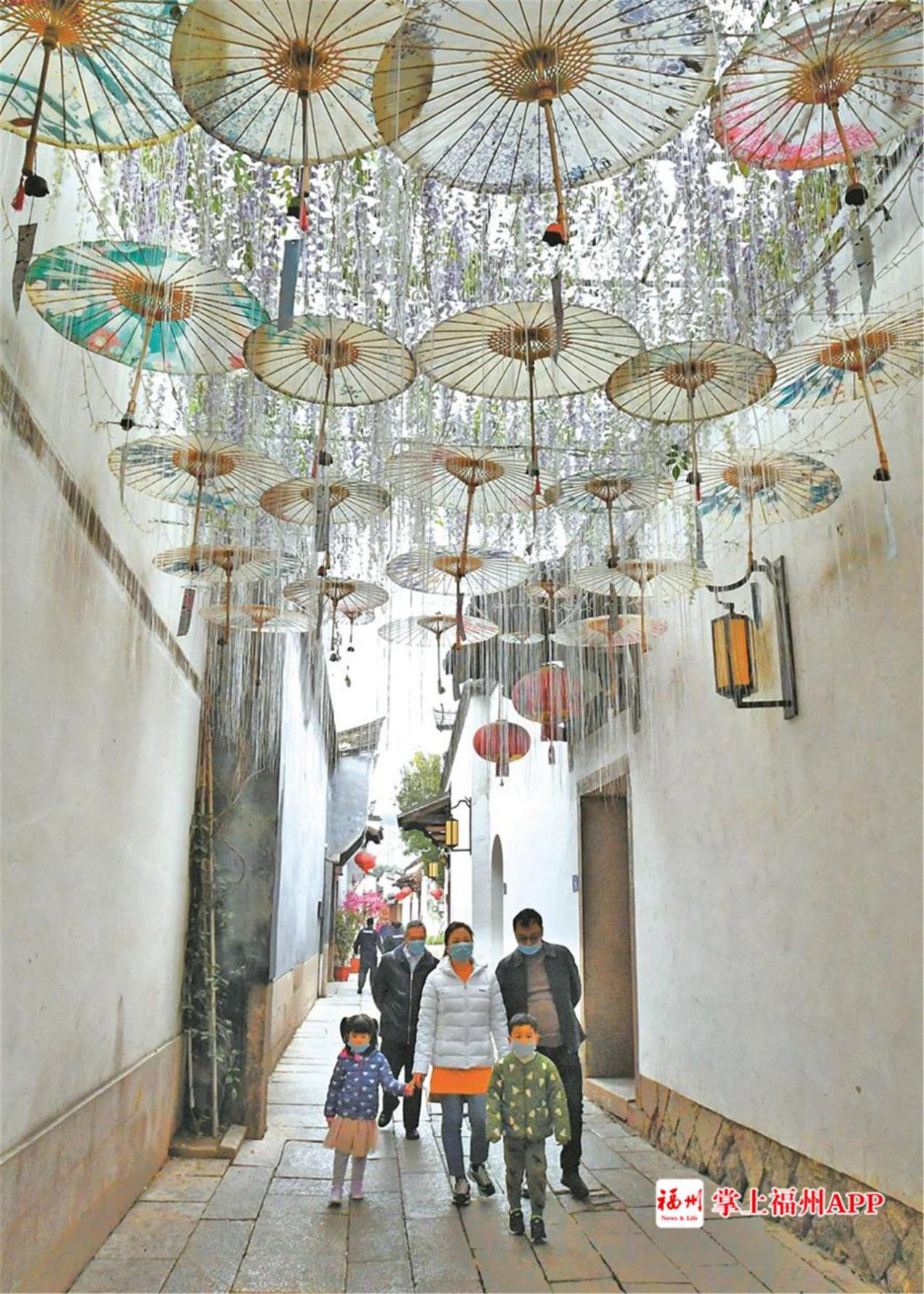 三坊七巷以传统节日为抓手,不间断地举办丰富多彩的福州传统民俗展示、体验活动,吸引了脱胎漆器、软木画、油纸伞等民间艺术业态入驻。坊巷内各类古厝逐步被开辟为传统文化的展示中心、交流平台以及文创产业基地,延续了古厝原有的使用功能、传承了闽都文化的血脉与精神,同时嵌入现代生活,古为今用。如今,三坊七巷历史文化街区年接待游客量已连续多年突破1000万人次。