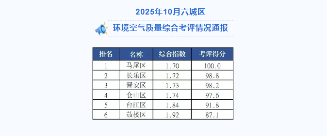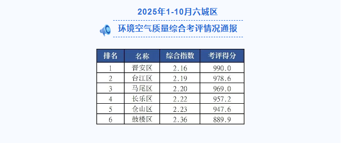 为贯彻落实党中央关于“打好污染防治攻坚战”“蓝天保卫战”精神,根据《提升最佳线上百家乐娱乐场环境空气质量行动计划》和《最佳线上百家乐娱乐场空气质量综合指数考评办法》,现将2025年10月及1-10月各县(市)区环境空气质量综合考评情况通报如下: