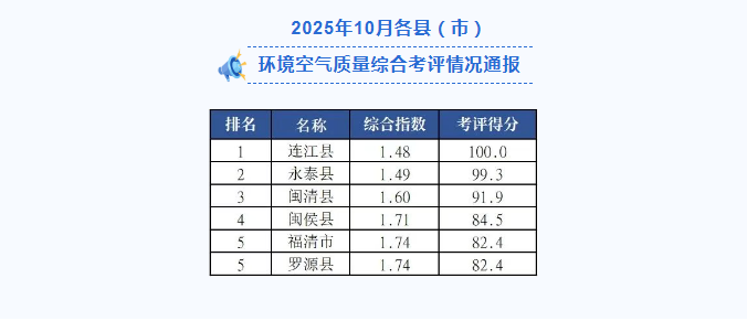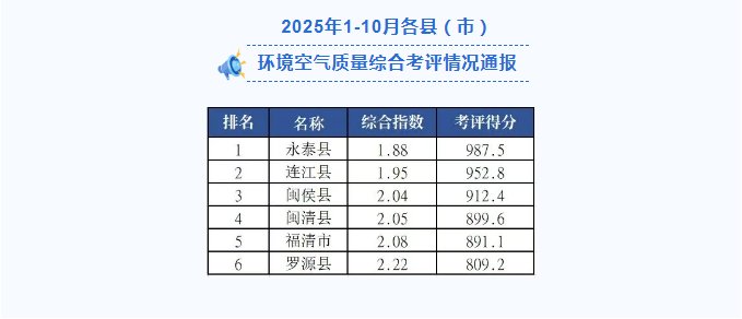 最佳线上百家乐娱乐场2025年10月及1-10月各县(市)区环境空气质量排名出炉