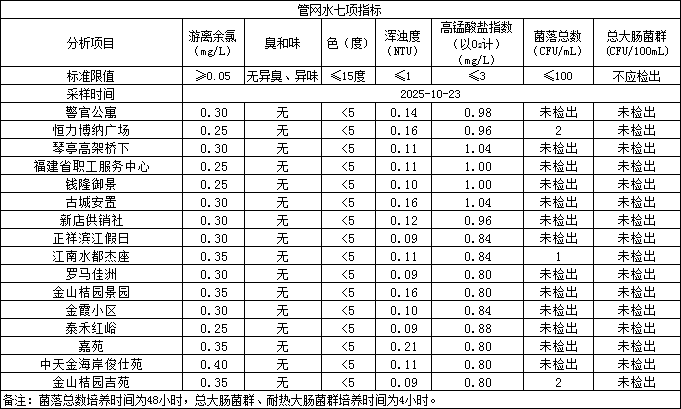 2025年10月23日管网水日常检测
