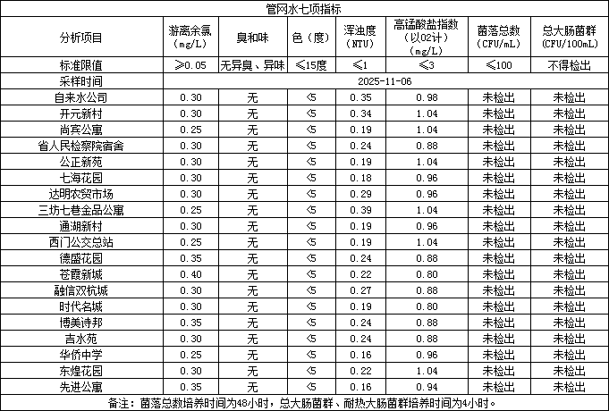 2025年11月6日管网水日常检测