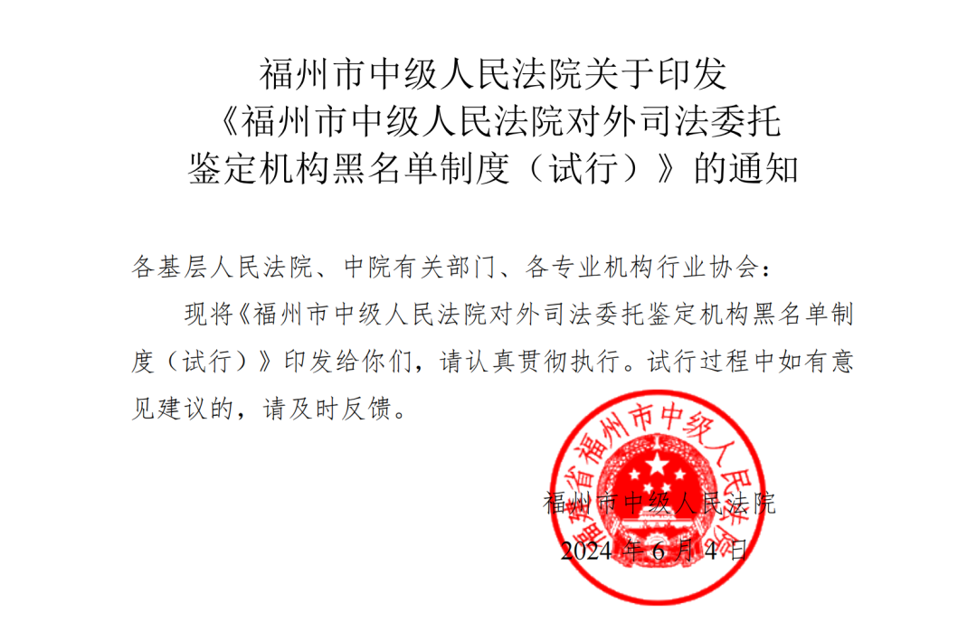 近日,福州中院召开中院鉴定机构黑名单管理委员会第一次会议,首次将一家工程检测机构列入鉴定机构“黑名单”。被列入“黑名单”管理的机构,将从人民法院诉讼资产网专业机构平台除名。