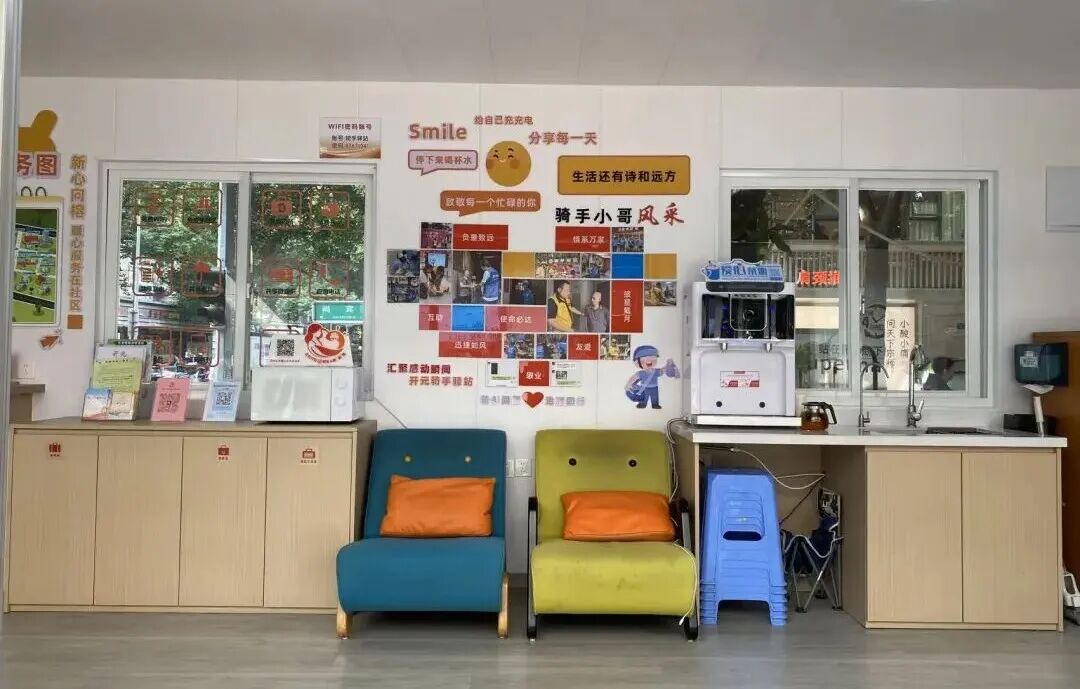 坚持以新就业群体实际需求为导向,以“暖心驿站规范化建设”为抓手,系统推进服务阵地网络建设。通过走访摸排,建立一套全覆盖台账,动态掌握辖区内快递、外卖从业人员信息。在此基础上,因地制宜建设3处骑手驿站,形成“品”字形服务矩阵,覆盖七星井、尚宾广场、井大路等重点区域,率先构建起“10分钟暖心服务圈”,切实将党组织的温暖送到新就业群体身边。