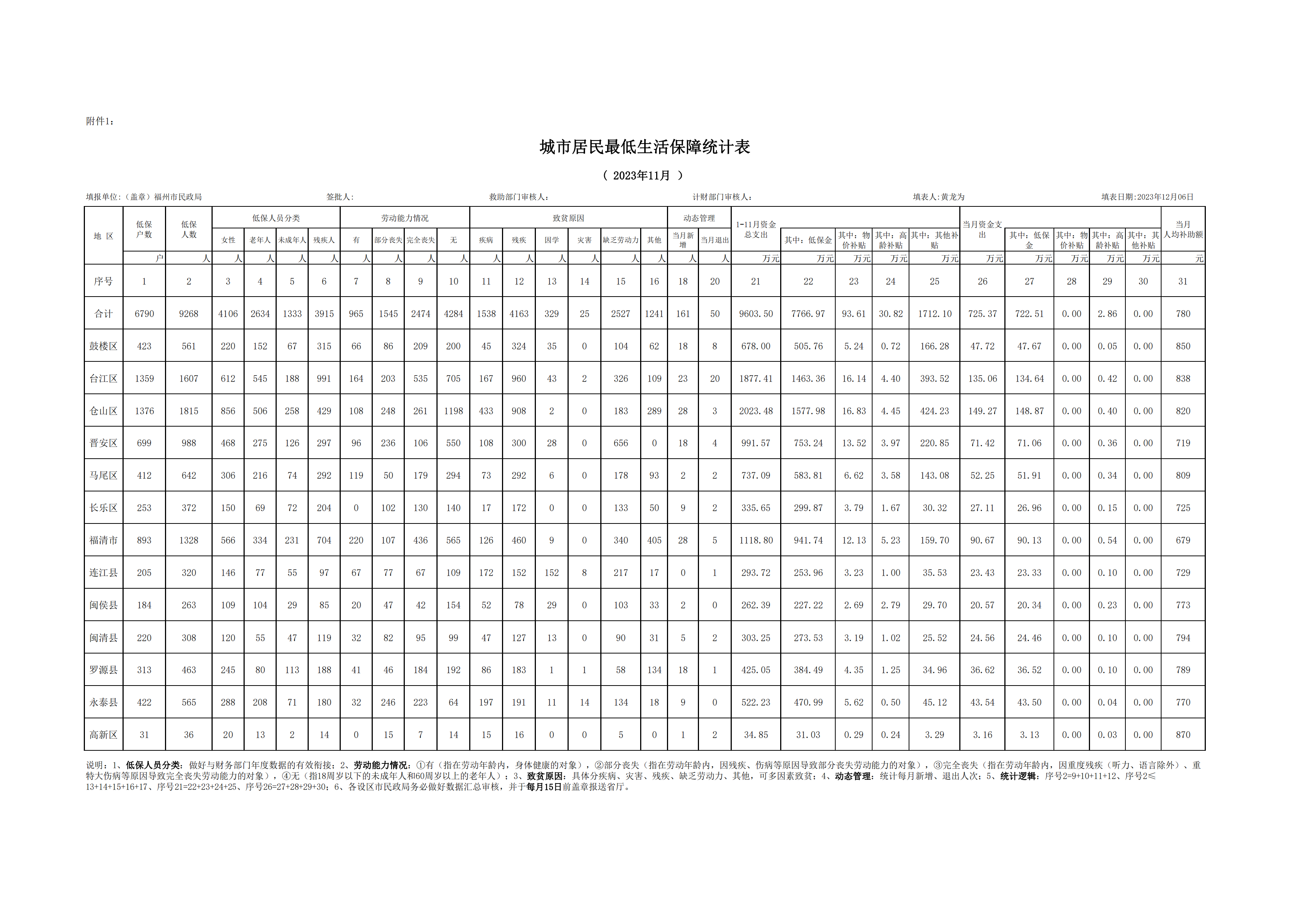 2023年最佳线上百家乐娱乐场城市居民最低生活保障统计表(11月)