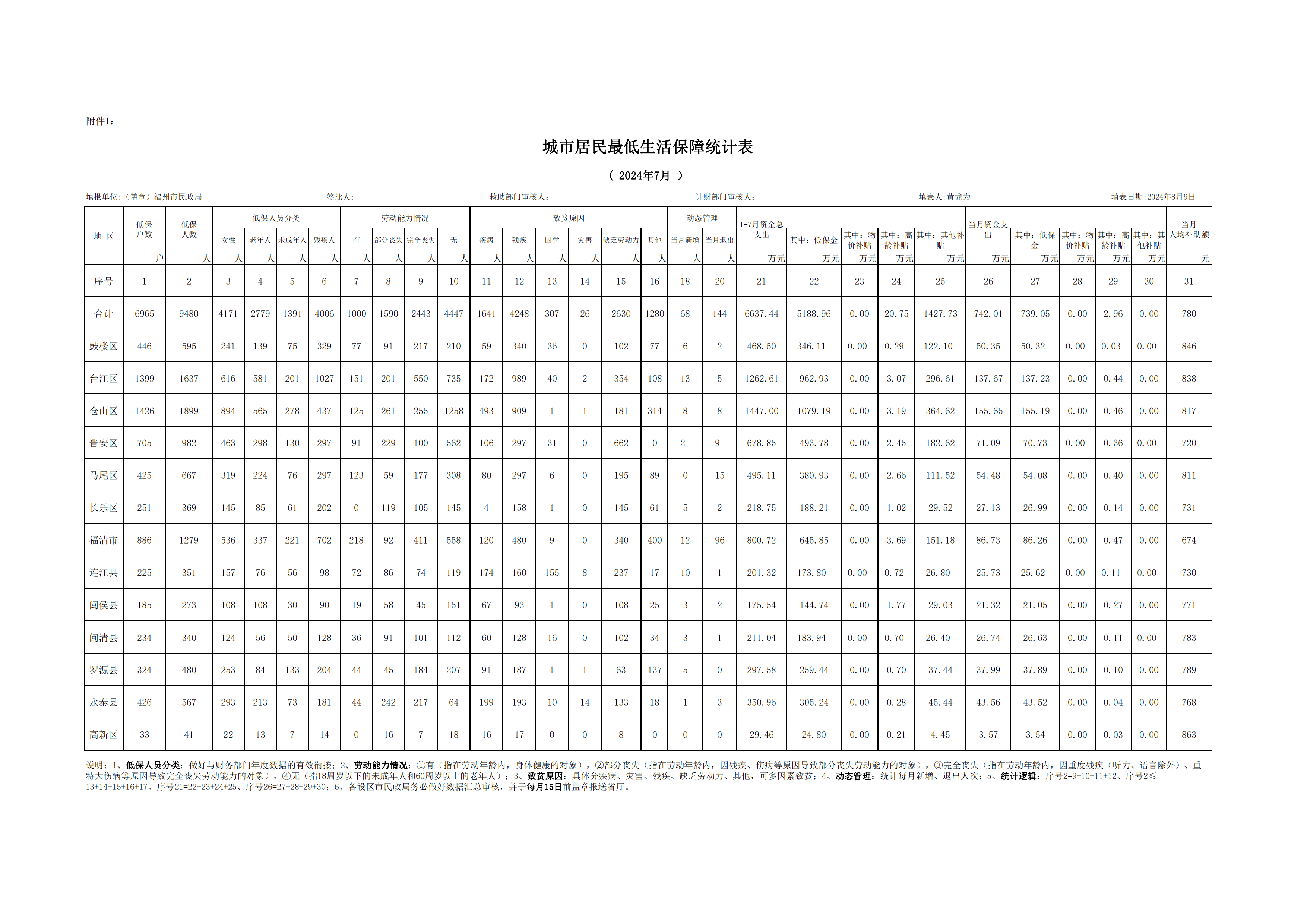 2024-07百家乐赌场城市居民最低生活保障统计表