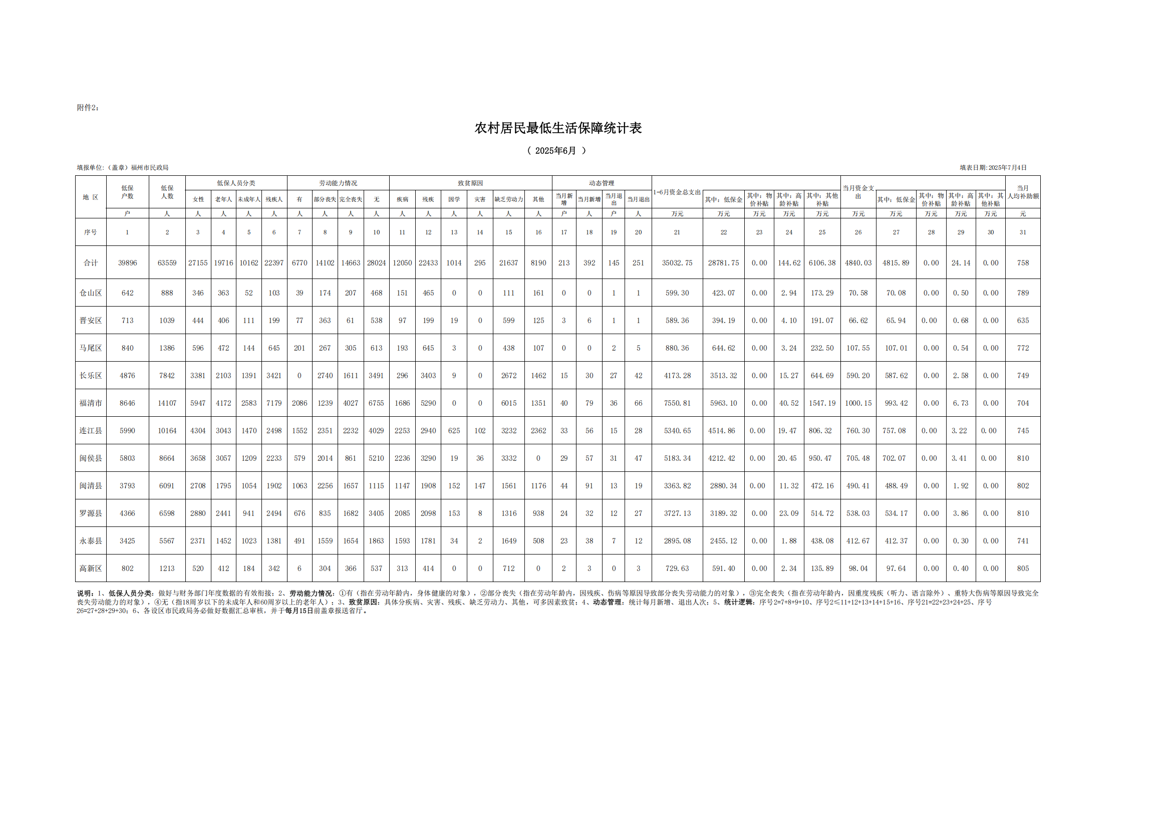 2025-6最佳线上百家乐娱乐场农村居民最低生活保障统计表