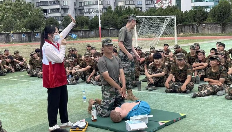 为切实筑牢校园安全防线,帮助师生掌握应对突发状况的“救命技能”,2025年9月29日下午,鼓楼区红十字会联合区委文明办、五凤街道办事处等单位,走进福建信息职业技术学院(龙腰校区)开展“矢志人道,青春同行”主题宣传活动,为近500名师生量身打造了一场沉浸式应急救护知识培训,将实用急救技巧送到师生身边。