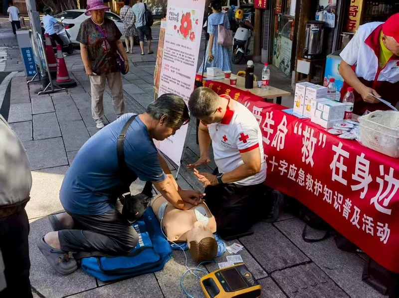 2025年9月9日上午,鼓楼区红十字会积极响应“急救普及惠邻里 文明实践护安康”急救科普宣传系列活动,在三坊七巷南口成功举办了一场丰富多彩的应急救护知识普及活动。