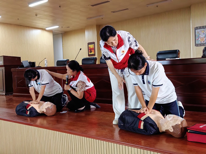 活动现场,闽侯县红十字应急救护志愿服务队队长、县红十字医院护理部主任许艳云首先向同学们介绍了红十字运动的基本知识和“世界急救日”的由来,然后围绕今年“世界急救日”的主题“急救与气候变化”,结合福州夏季台风频繁、汛期洪涝多发的地域特点,详细讲解了极端天气可能引发的树木倒伏、人员被困、溺水等突发状况,强调掌握急救技能在应对这些突发情况时的重要性。