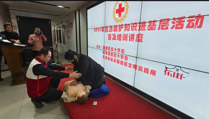 2025年12月11日下午,鼓楼区红十字会联合东街街道红十字会在街道文化站开展“应急救护知识进基层”活动,将实用急救技能送到群众身边,百余名居民踊跃参与。