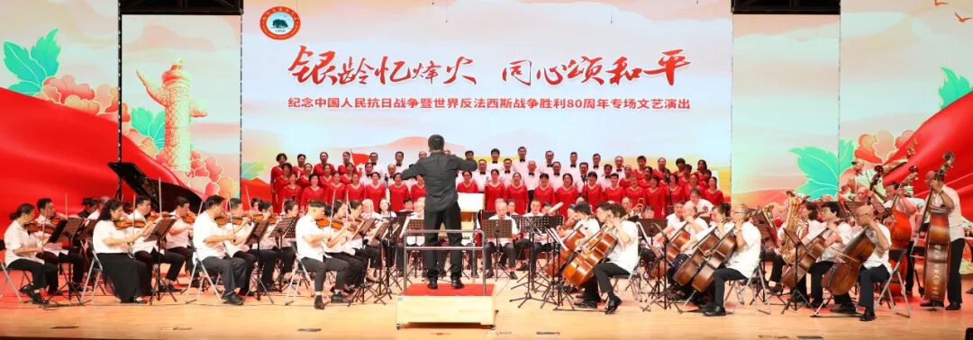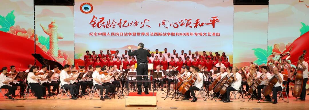 开学式结束后,别开生面的 “开学第一课”——“银龄忆烽火 同心颂和平”——纪念中国人民抗日战争暨世界反法西斯战争胜利80周年专场文艺演出正式开启新学期的征程。学员们通过这场特殊的 “艺术党课” ,自排自编自演了舞蹈、诗朗诵、合唱、乐器演奏等六个精彩节目,带领全场观众穿越时空,重温烽火岁月。