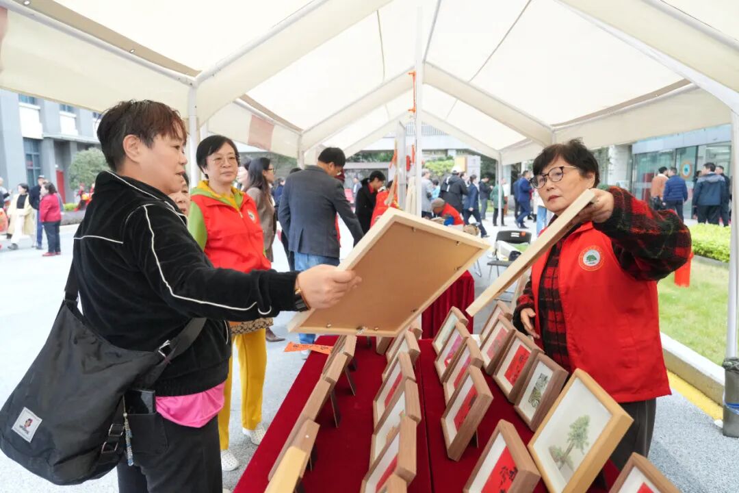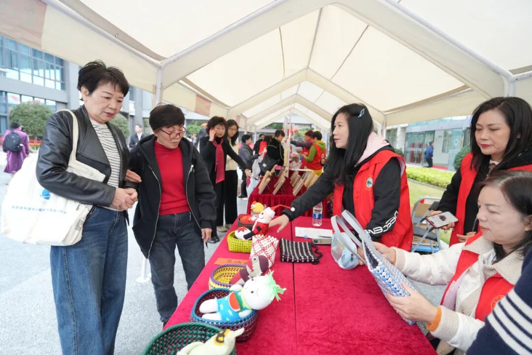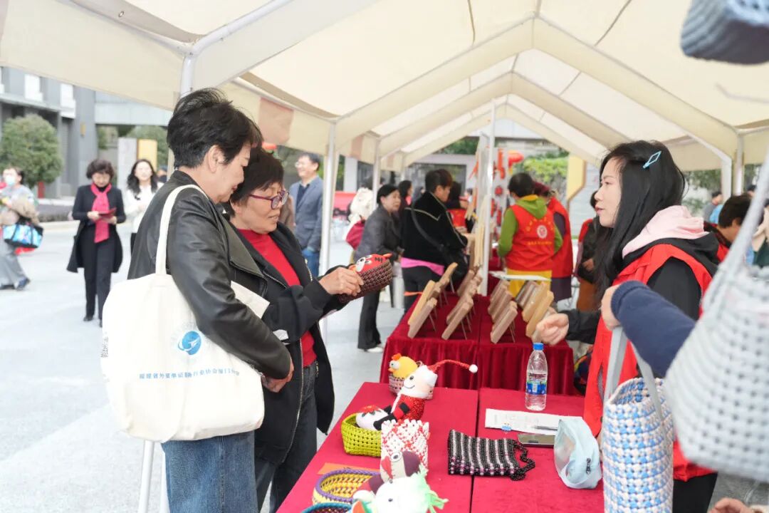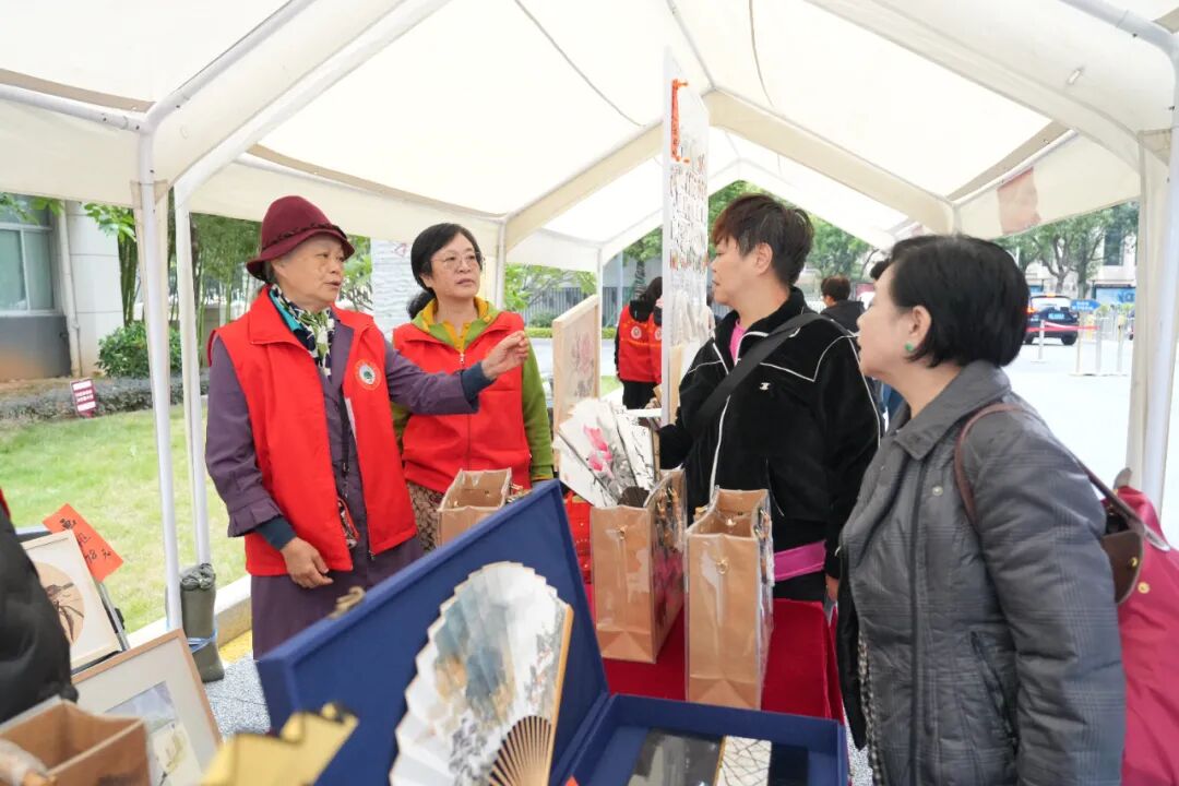 爱心义卖摊位前,大漆茶台、藤编筐、手工玩偶、书画摆件等手工作品琳琅满目,整齐陈列。这些精美物件皆出自老年学员之手,从构思设计到裁剪缝制、打磨上漆,无不凝聚着他们的巧思与心血。部分作品更融入福州古厝、山水等地方元素,兼具实用价值与浓郁的文化韵味。