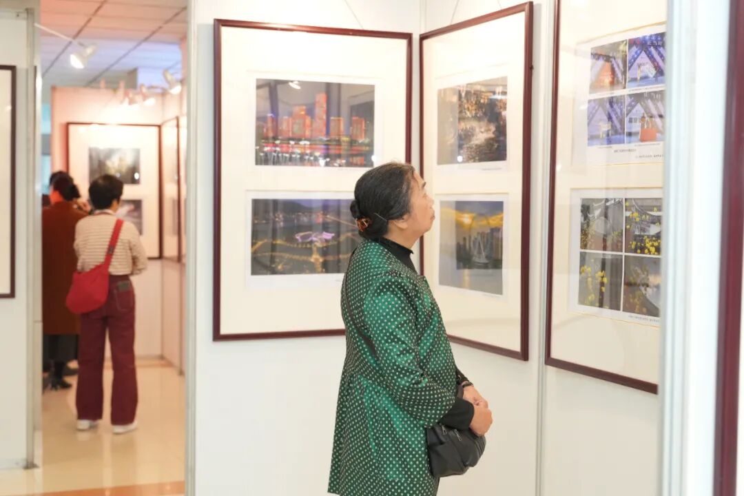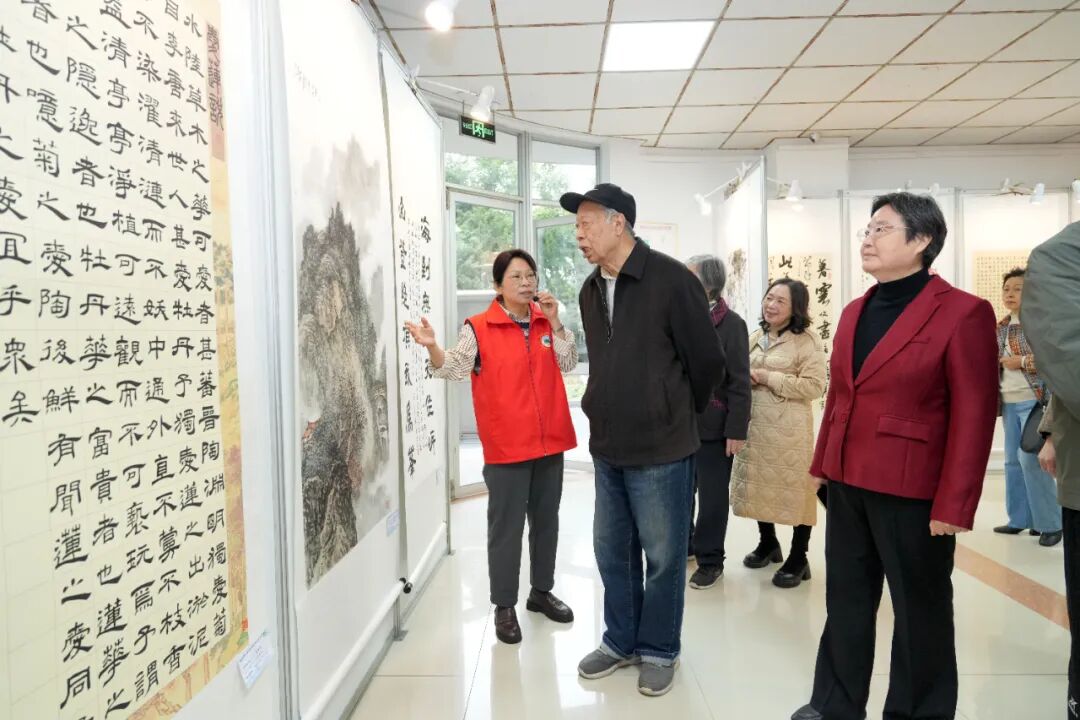 简短的开幕仪式后,与会领导、嘉宾与老年学员们移步展厅,兴致盎然地参观了摄影、书画及手工作品展。