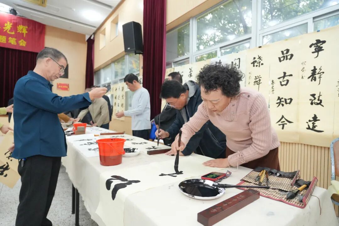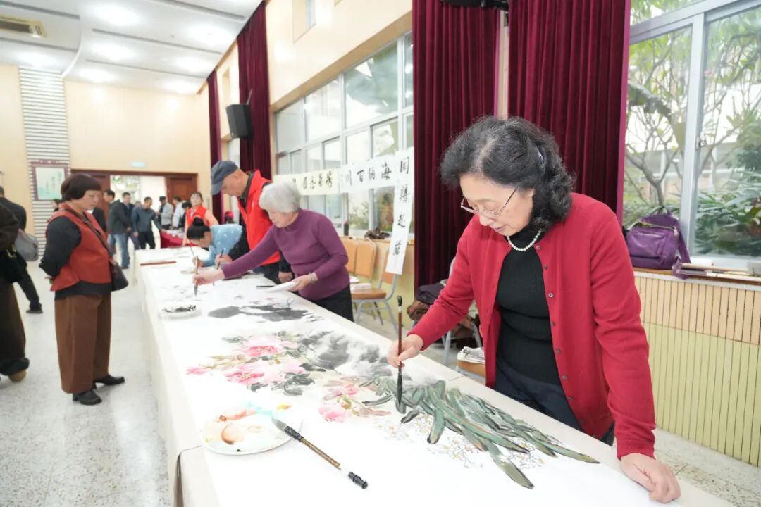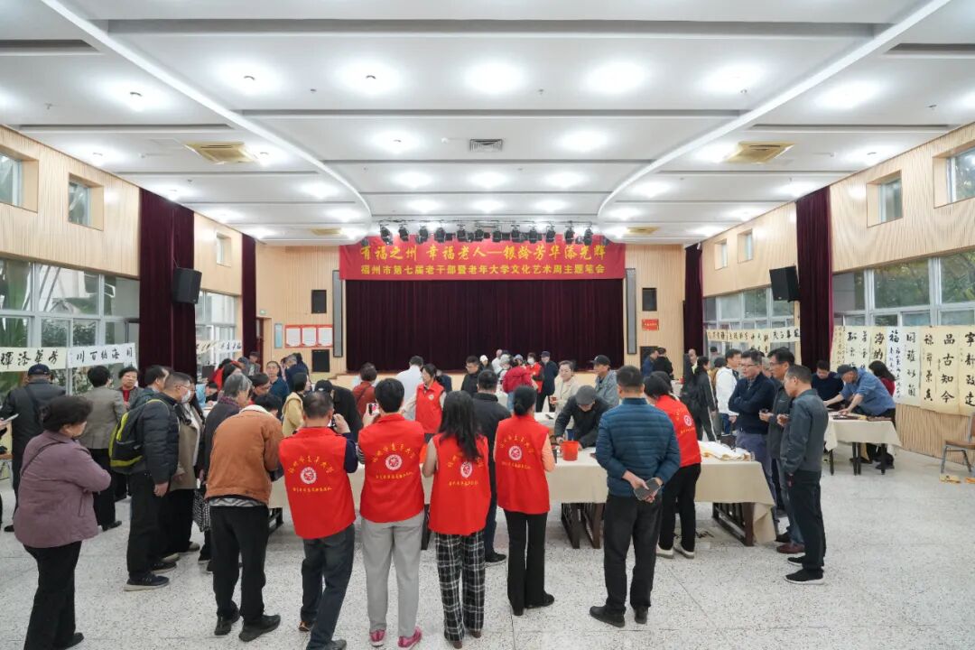 移步至书画笔会现场,气氛热烈而专注。市级老领导赵守箴、方庆云、郭永灿,以及市老年大学书画学会、霞光画院的“银龄书画家”们展纸挥毫,笔墨纵横。他们或凝神构思,运笔如云;或即兴发挥,落笔生花。行楷隶草各显风采,花鸟山水意趣盎然。一幅幅作品或寄情自然,或歌颂时代,或抒写家国情怀,主题鲜明、格调高雅,生动诠释了“有福之州”老人们丰富多彩、精神充盈的幸福晚年。