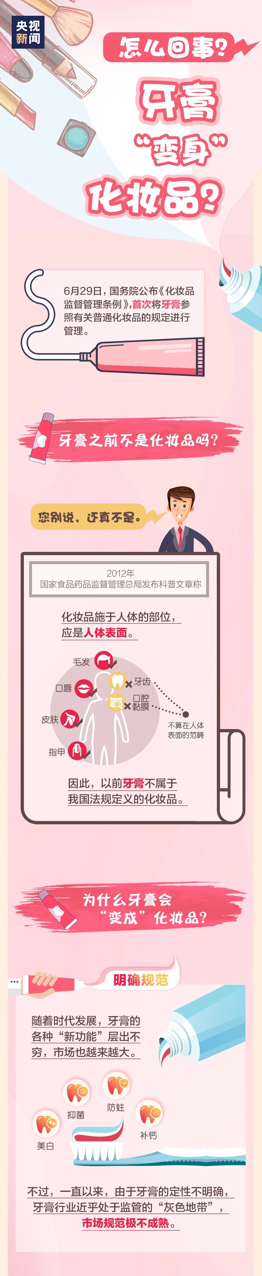 牙膏算化妆品了?牙膏为何“变身”进入化妆品行列?除了牙膏以外,新规还有哪些变化?今天,一张图带你了解“美丽”行业的新规