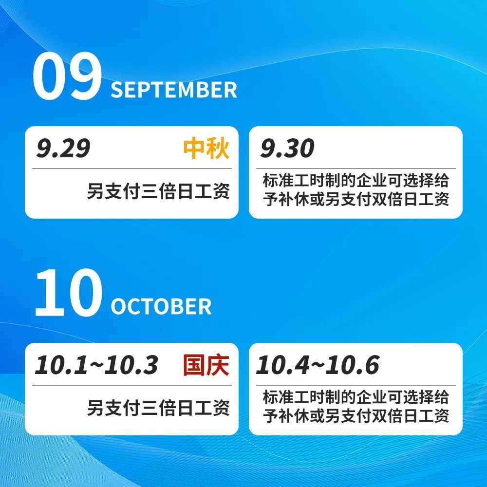* 中秋国庆假期,这几天加班可领三倍工资