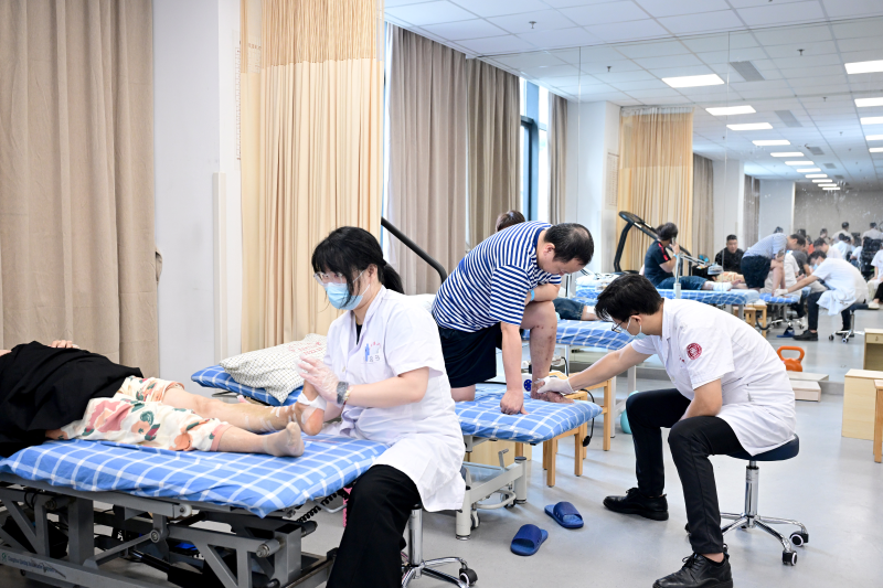 百家乐赌场时间接近中午12点,百家乐在线第二总医院康复医学科骨伤康复室内依然“热火朝天”,上肢康复室里每张桌子,下肢康复室的每一张床,满满都是人。