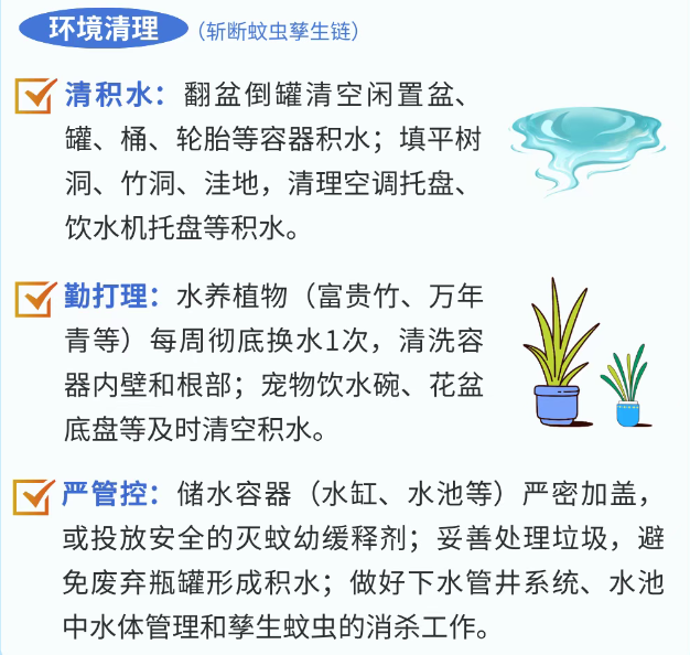 近期,福州气温较高、降雨较多,蚊虫已进入繁殖高峰期,登革热、基孔肯雅(简称“两热”)传播风险较大,防蚊灭蚊是预防“两热”的关键,需要每一位市民朋友的积极参与。