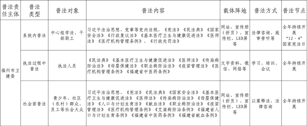 百家乐在线卫生健康委员会2024年国家机关“谁执法谁普法”责任清单