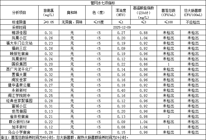 2025年12月9日管网水日常检测