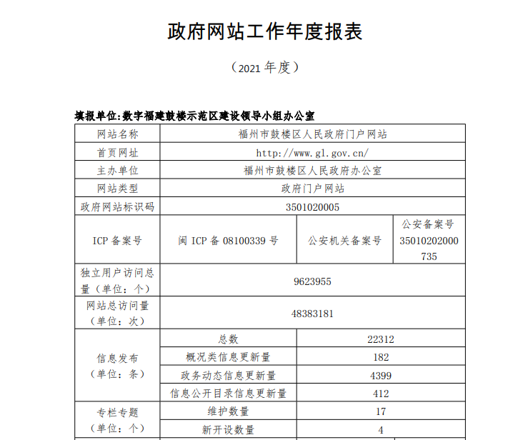 当前位置: 首页 > 政府网站工作报表 > 2021年政府网站年度报表 > 县市区政府网站工作报表 > 鼓楼区