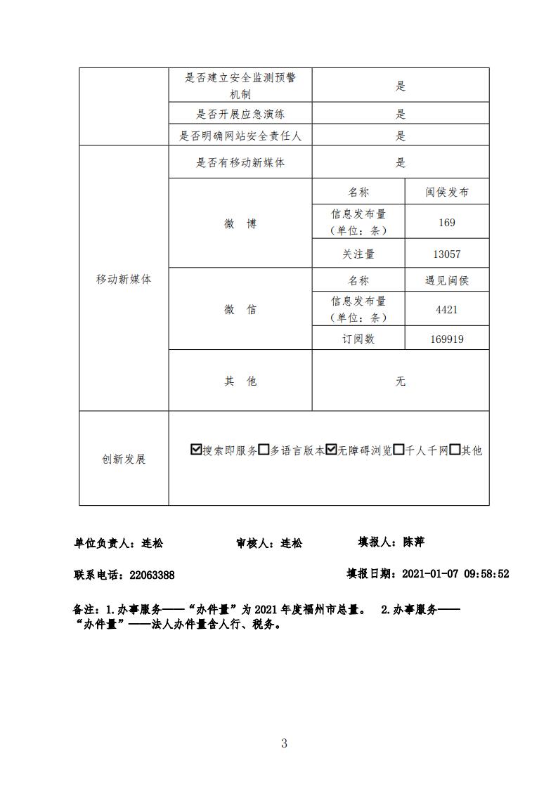 当前位置: 首页 > 政府网站工作报表 > 2021年政府网站年度报表 > 县市区政府网站工作报表 > 闽侯县