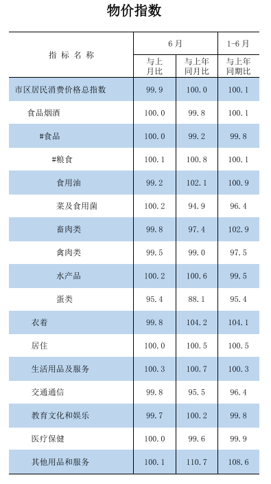 2025年1-6月物价指数