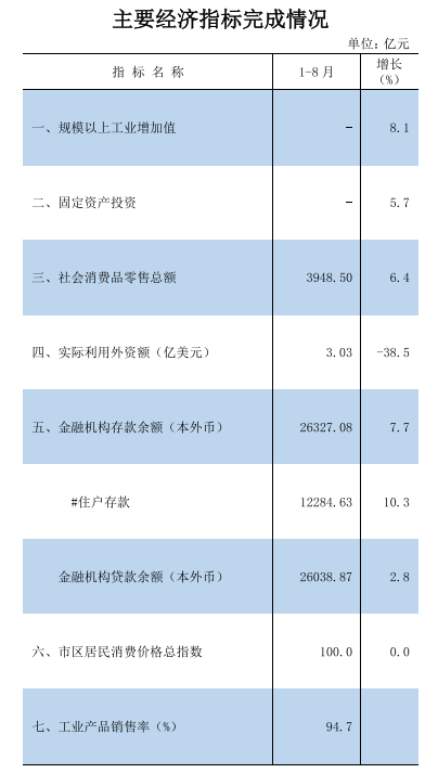 2025年1-8月主要经济指标完成情况