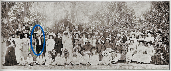 绵嘉义一生共育有9个子女。孙女查洛女士是他第五个儿子阿尔弗雷多的女儿,居住在西班牙首都马德里,现已80多岁高龄了,但仍思维敏捷。有研究者经过多方打听才找到她。她接到陌生的越洋电话,得知现在中国还有很多人在关注和研究她的祖父时非常高兴,介绍了很多有关绵嘉义以及后代的情况,这对研究绵嘉义颇有帮助。她还提供了当时摄于厦门的绵嘉义大女儿结婚时的全家福照片(图2)。当然,她知道祖父是中国集邮界早期的名人了。尤其让她自豪的是,当年绵嘉义曾作为中国政府代表团成员,被派往西班牙出席西班牙国王的大婚典礼,这也成为中西民间友好交往的一段佳话。