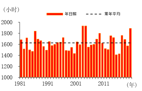 1981—2020年最佳线上百家乐娱乐场逐年日照时数